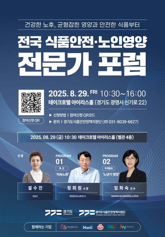 [뉴스서울] 경기도가 전국 식품안전 및 노인영양 전문가와 관계자들을 대상으로 오는 29일 광명 테이크호텔에서 ‘전국 식품영양·노인영양 전문가 포럼’을 개최한다.