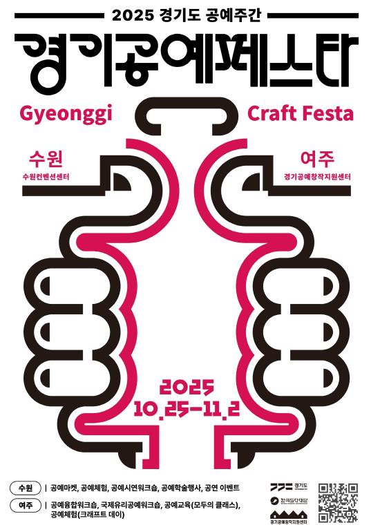 한편 10월 25일 수원컨벤션센터 야외광장에서는 ‘2025 경기도 공예주간-경기공예페스타’ 개막식이 열린다. 개막식은 무대 제막식을 시작으로 경기공예페스타에 참여한 공예마켓·워크숍·체험 부스 소개, 가족 음악극 ‘음악당 달다, 랄랄라 패밀리쇼’로 기념 공연이 이어지며 축제의 시작을 알릴 예정이다.