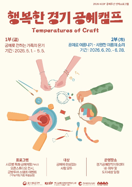 [뉴스서울] 한국도자재단이 오는 5월 1일부터 경기공예창작지원센터(여주) 일원에서 체험·전시·이벤트를 결합한 참여형 프로그램 ‘2026 행복한 경기 공예 캠프’를 개최한다.