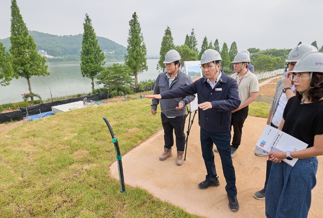 특히, 다가오는 우기에 대비해 현장의 배수시설 및 배수 경로를 집중적으로 확인·점검했다. 또한, 산들바람언덕정원에서 호수를 조망할 수 있는 개방성 확보를 위해 기존에 조성된 산책로와의 연계성에 대해 재차 강조했다.