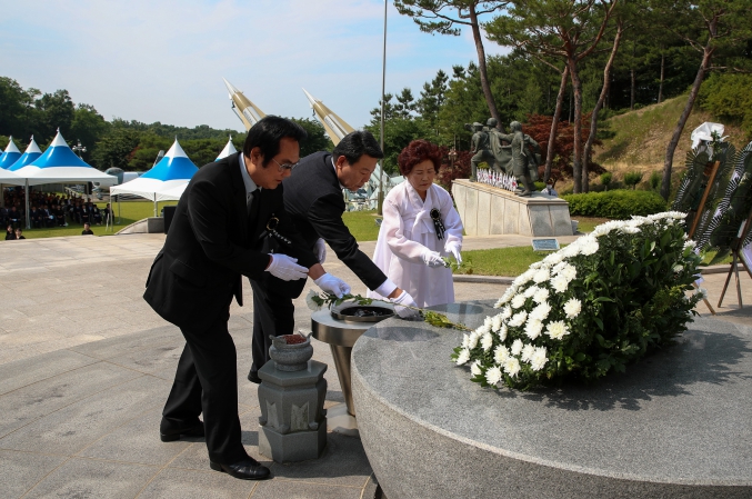 추념식은 전국에서 동시에 울리는 사이렌 소리에 맞춰 순국선열과 호국영령에 대한 묵념으로 시작해 순국선열과 호국영령께 경의를 표하는 2대대의 예총 발사와 국민의례, 헌화와 분향, 추념사, 헌시 낭송, 현충일 노래 제창 순으로 경건하게 진행됐다.