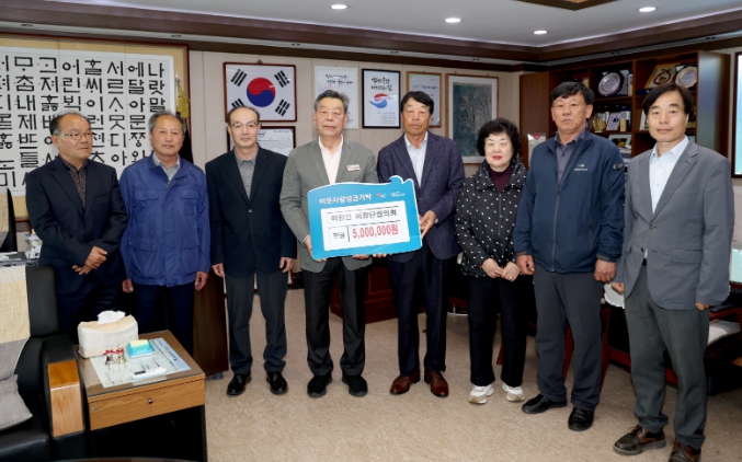 군에 따르면, 이원면 이장단협의회는 지난 24일 군청 군수실에서 가세로 군수와 이학재 회장 및 회원 등이 참석한 가운데 기탁식을 갖고 성금 500만 원을 군에 기탁했다.
