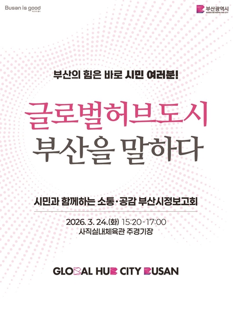 [뉴스서울] 부산시는 오는 24일 오후 3시 20분 사직실내체육관 주경기장에서 시민과 지역 주요 인사 등이 참석한 가운데 '글로벌허브도시 부산을 말하다' 시정보고회를 개최한다고 밝혔다.