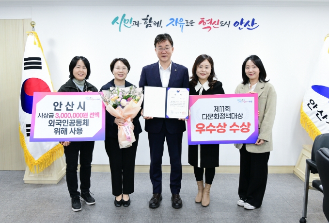 안산시는 외국인 주민 정착 지원 활동과 지역 사회참여 및 다문화 사회의 조화로운 발전 시책을 추진한 유공을 인정받아 우수상을 수상했다. 시는 이번 수상에 따른 상금 300만 원 전액을 외국인 주민 공동체를 위한 지원 활동에 사용하기로 결정했다.