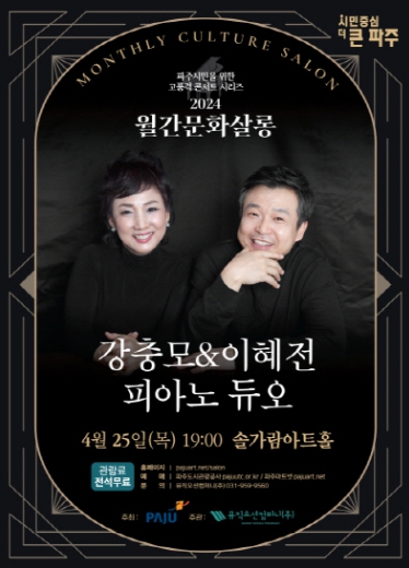 [뉴스서울] 파주시는 파주시민에게 다양한 공연을 선사하기 위해 4월 25일 솔가람아트홀에서 고품격 공연인 ‘월간문화살롱’을 개최한다.