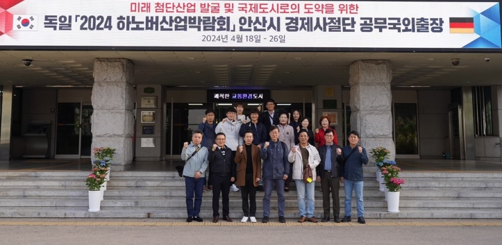 ▲ 이민근 안산시장, 경제사절단과 독일행… 교류 협력·투자유치 전력(지난 18일 이민근 안산시장이 2024 독일 하노버 산업박람회 참가, 기업 IR을 통한 외투기업 유치 등을 위해 송바우나 안산시의회 의장, 관내 기업체 등 20명의 경제사절단을 꾸려 7박 9일간의 일정으로 해외 출장에 나섰다 |
