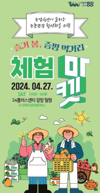 [뉴스서울] 충북 증평군이 오는 27일 34플러스센터(구 증평인삼관광휴게소, 증평읍 중부로 2451) 광장에서 ‘즐겨 봄, 증평 먹거리 체험마켓 행사’를 개최한다.