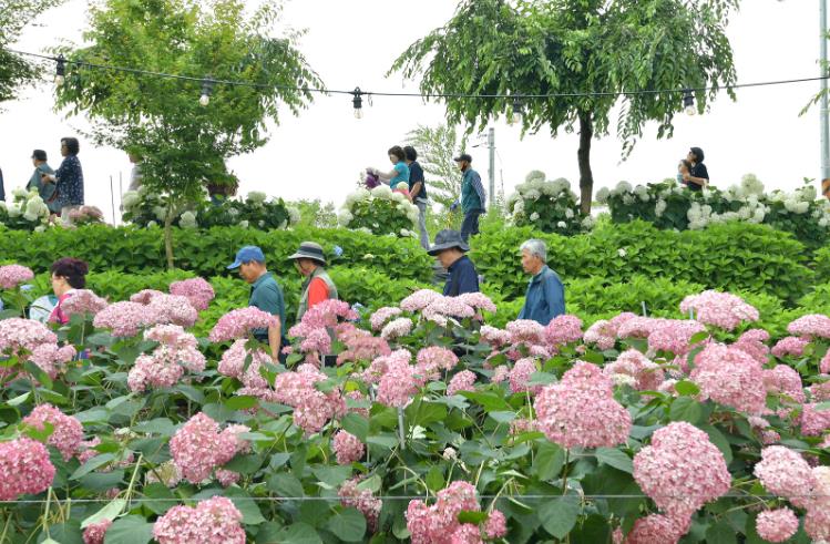 한편, 유구천 수변공간을 따라 조성된 4만 3000㎡ 규모의 수국정원에는 앤드리스썸머와 핑크아나벨 등 무려 22종, 1만 6000본에 달하는 수국이 최근 꽃망울을 터트리기 시작했다.