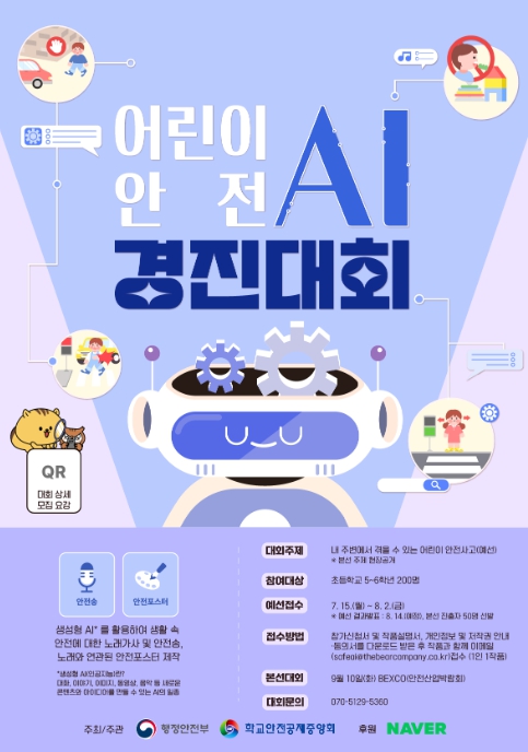 이번 대회는 어린이들이 직접 생성형 AI를 활용하여, 안전 문제에 대해 고민하고 해결방안을 찾아가는 과정을 노래 가사, 안전포스터 등으로 제작하여 겨룬다.