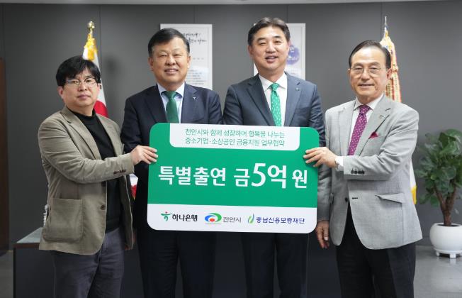 이날 협약식에는 박상돈 천안시장과 이동열 하나은행 충청영업그룹부행장 등이 참석해 소상공인 지원에 뜻을 모았다.