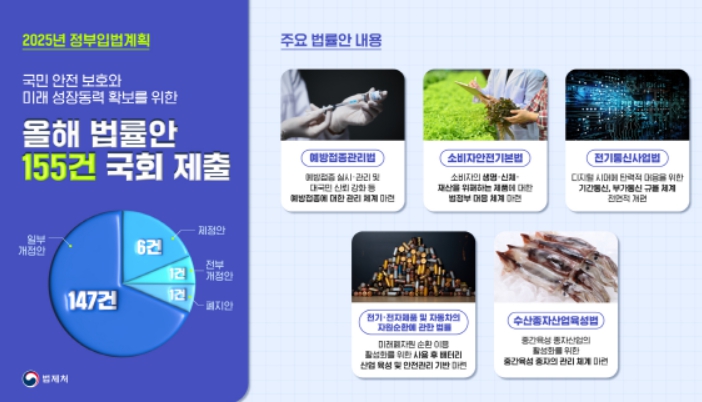 법제처는 이와 같은 내용의 정부 주요 정책의 법제 일정을 담은 ‘2025년도 정부입법계획’을 1월 21일 국무회의에 보고했으며, 1월 중에 국회에 통지할 예정이다.
