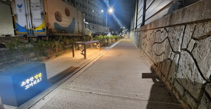 구는 이번 사업을 통해 기존 무단 경작물을 철거하고, 어두운 이면도로에는 밝은 조명시설로 안전한 보행로를 조성하고, 녹지와 벤치 등을 설치해 주민 쉼터를 조성했다.