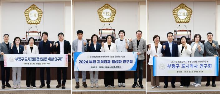[뉴스서울] 부평구의회 의원연구단체 ‘부평구 도시정비 활성화를 위한 연구회(대표의원 윤태웅)’를 필두로, ‘2024 부평 지역경제 활성화 연구회(대표의원 정한솔)’, ‘부평구 도시역사 연구회(대표의원 박영훈)’가 6월 27일 착수보고회를 개최했다.