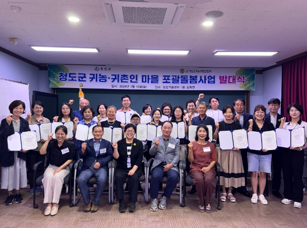 [뉴스서울] 청도군은 지난 15일 마을포괄돌봄 매니저와 사업 수혜자 등 40여명이 모인 가운데 귀농·귀촌인 마을포괄돌봄사업 발대식을 개최했다.