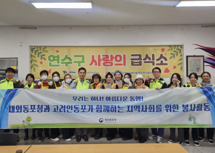 재외동포청 직원들과 고려인 동포 청년들은 인천 연수구 거주 취약계층을 대상으로 음식 배식, 설거지 등을 진행했다.