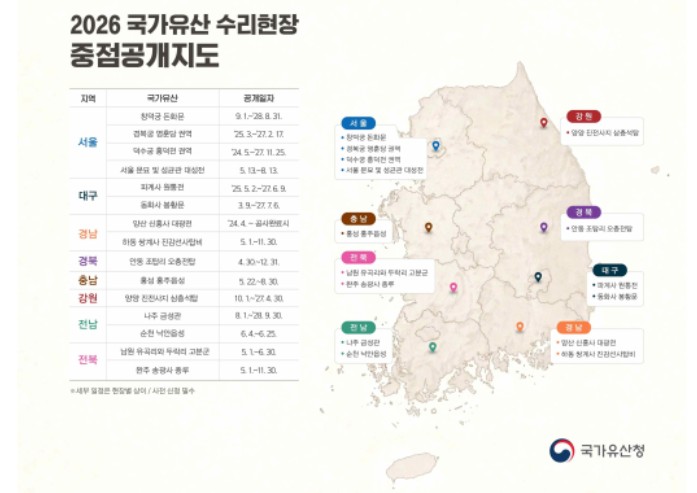 | ▲ 2026 국가유산 수리현장 중점공개지도 |