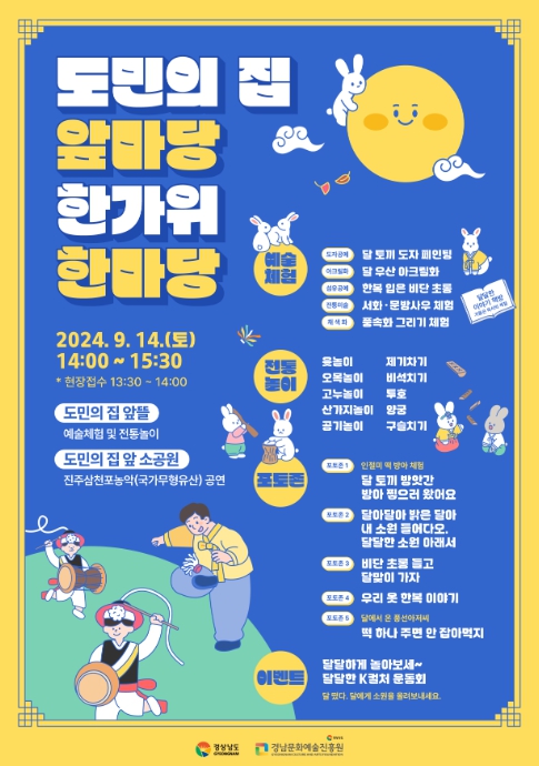 [뉴스서울] 경상남도는 오는 14일 도민의 집 야외 정원과 가로수길 소공원에서 추석 명절을 맞아 특별한 행사를 개최한다고 밝혔다.