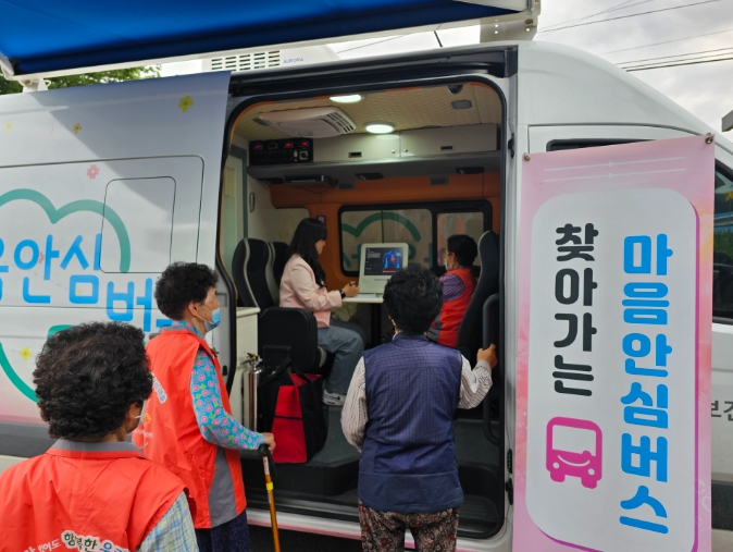 경북 최초 보건복지부 지원으로 의성군에 도입된 마음안심버스는 지리・교통・시간적으로 접근이 어려운 읍면 마을 곳곳을 순회하며, 스트레스, 우울 등 정신건강에 어려움을 겪는 지역주민들에게 다양한 정신건강 서비스를 제공하고 있다.