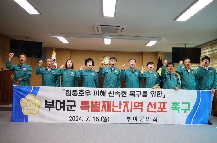 [뉴스서울] 부여군의회는 15일 부여군 집중호우 피해에 따른 『특별재난지역』 선포 촉구 성명서를 발표했다.