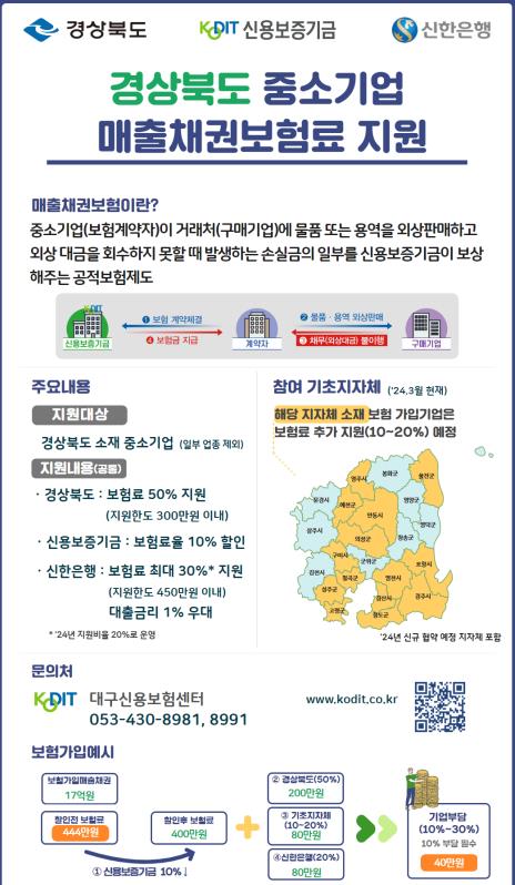매출채권보험 가입을 원하는 중소기업은 성주군청 기업경제과 또는 신용보증기금 대구신용보험센터에 문의하시기 바란다.