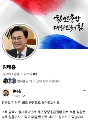 ▲ 김태흠 충남도지사 “의료 현장 복귀” 호소 |