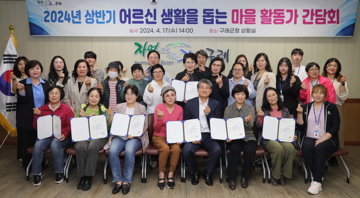 이날 간담회에서는 김순호 구례군수를 비롯한 어르신 생활을 돕는 마을활동가 17명, 관련 공무원 등 30여 명이 참석해 활동 사례를 공유하며 발전 방향에 대한 다양한 의견을 수렴했다.