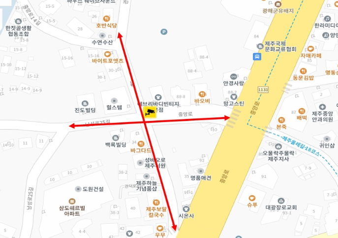 ▲ 불법 주정차 고정식 카메라 설치 장소(중앙로상점가 공영주차장 북측 관덕로8길) |