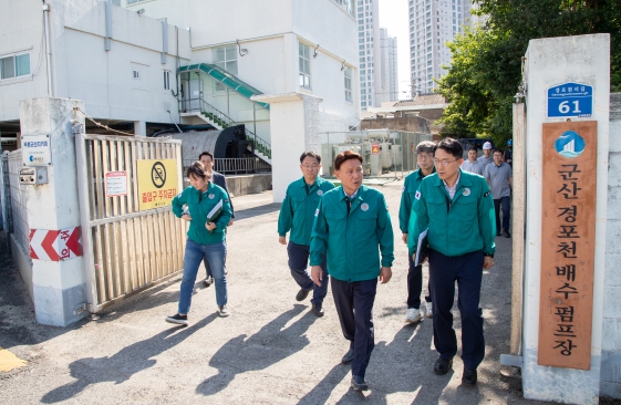 먼저 강시장은 군산시 주요 재난대비 시설인 경포천 배수펌프장과 경포배수갑문의 작동상태 그리고 유지관리에 대한 전반적인 상태를 관계공무원들과 함께 현황청취 및 점검을 실시했다. 시설을 살펴본 뒤엔 집중호우 시 즉각적으로 펌프장을 가동하여 침수피해를 최소화시키도록 당부했다.