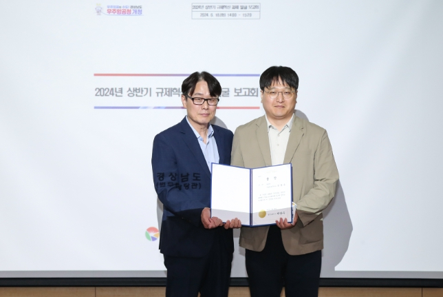 이번 수상은 지난해 ‘23년도 경상남도 규제혁신 우수사례 경진대회 장려상 수상에 이어 2년 연속 규제혁신 분야 수상으로, 경남도 내 각 시군에서 제출한 23건의 우수사례 중 1차 서면심사를 통과한 10건에 대해 발표심사를 통한 경합 후 최종 순위가 결정됐다.