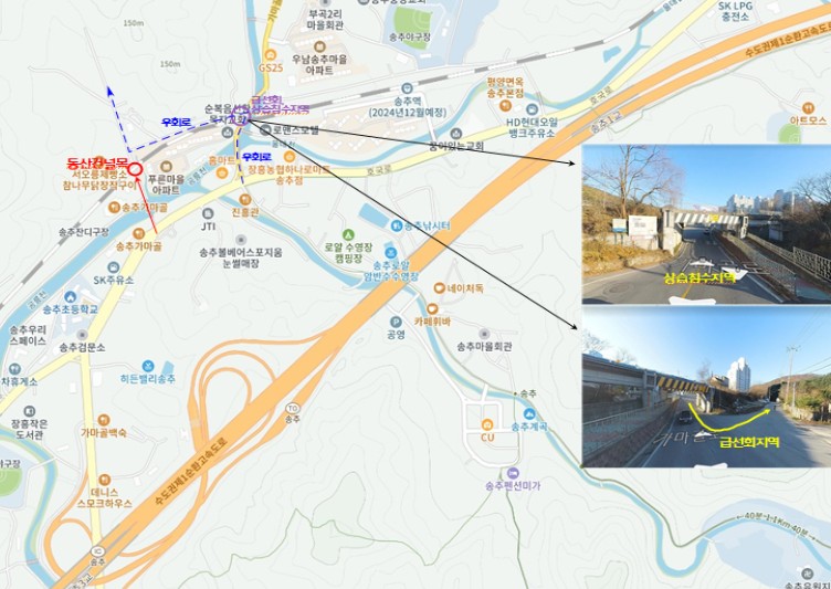 1975년 군(軍)이 철도를 횡단하는 부대 진입로를 개설하면서 건널목을 설치해 달라고 당시 철도청(현 국가철도공단)에 요청했고, 경비부담ㆍ감시원 배치 및 향후 건널목의 입체화 등 철도청의 조건을 군(軍)이 모두 수용해 임시건널목의 형태인 동산건널목을 설치하여 50년 가까이 군(軍) 차량과 지역 주민이 함께 이용해 왔다.