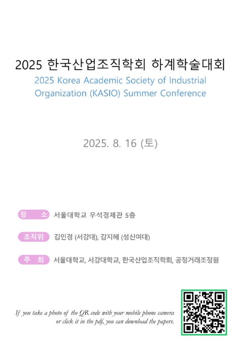 세 번째 세션: 이론과 실증에서는 ‘Signaling Quality by a Two-Part Tariff(김정유)’, ‘Does Generative AI Crowd Out Human Creators? Evidence from Pixiv(김수열)’을 비롯한 다양한 국내외 연구 발표 및 토론이 이루어졌다.