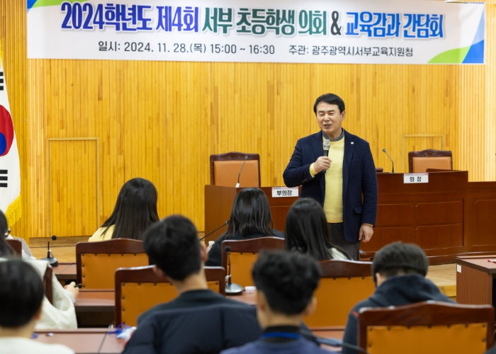 이날 이 교육감은 ‘제4회 서부 초등학생 의회’의 안건 중 하나인 ‘학생 놀 권리 보장’에 대한 의견을 주고 받았다.