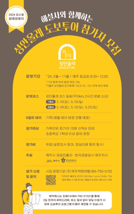 [뉴스서울] 제주시는 오는 5월부터 11월까지 해설사와 함께하는 성안올레 도보 투어 프로그램을 운영한다.