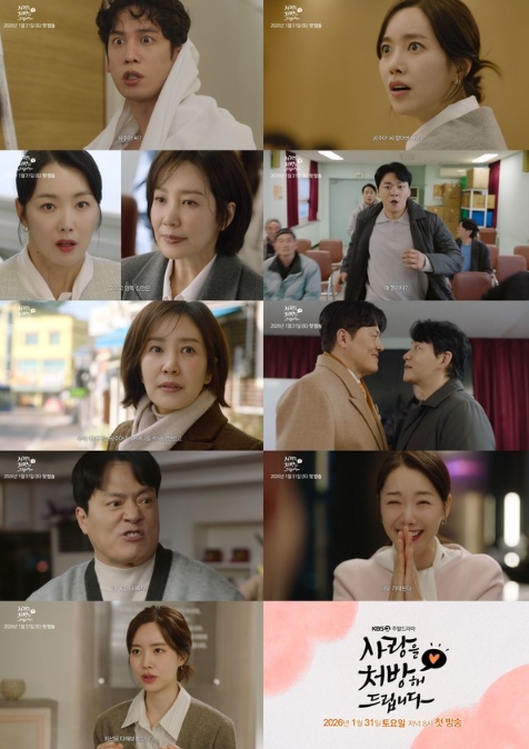오는 2026년 1월 31일 저녁 8시 첫 방송 예정인 KBS 2TV 새 주말드라마 ‘사랑을 처방해 드립니다’(연출 한준서 / 극본 박지숙 / 제작 HB엔터테인먼트)는 30년 동안 악연으로 얽혔던 두 집안이 오해를 풀고 서로의 상처를 보듬으며, 결국 하나의 가족으로 다시 태어나는 패밀리 메이크업 드라마다.