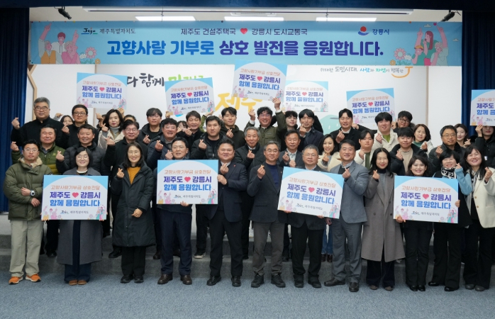 [뉴스서울] 제주특별자치도 건설주택국은 강릉시청 도시교통국과 함께 고향사랑기부제를 통한 지역 상생협력 실천을 위해 양 지자체 간 상호 교차 기부를 추진한다고 밝혔다.