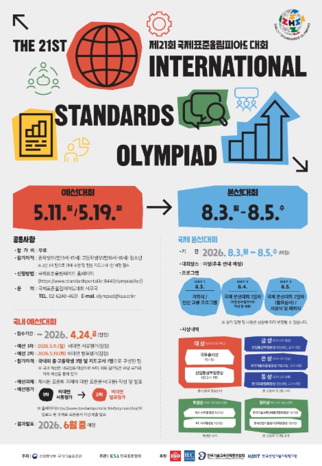 [뉴스서울] 산업통상부 국가기술표준원은 금년 8월에 개최되는 세계 청소년 표준화 경진대회인 '제21회 국제표준올림피아드'에 참가할 한국대표팀 선발을 위해 3월 5일부터 국내 예선대회 참가팀 모집을 시작한다.