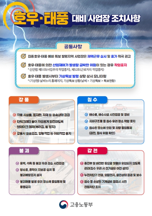 ▲ 호우·태풍 대비 사업장 조치사항 가이드 |