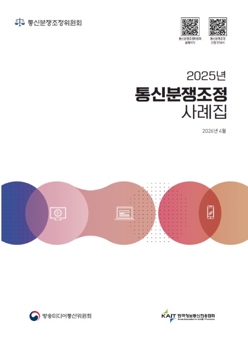 방송미디어통신위원회는 30일 통신서비스 이용 계약 및 해지, 속도 품질 등 서비스 이용 과정에서 발생한 다양한 분쟁 사례를 유형별로 엮은 ‘2025년 통신분쟁조정 사례집’을 발간했다고 밝혔다.