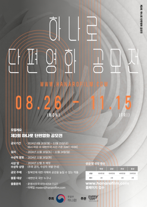 [뉴스서울] 통일부 하나원은 탈북민의 성공적인 정착을 응원하고, 남북 주민간 화합의 분위기를 만들어 나가기 위해 ‘제3회 하나로 단편영화 공모전’을 개최한다.