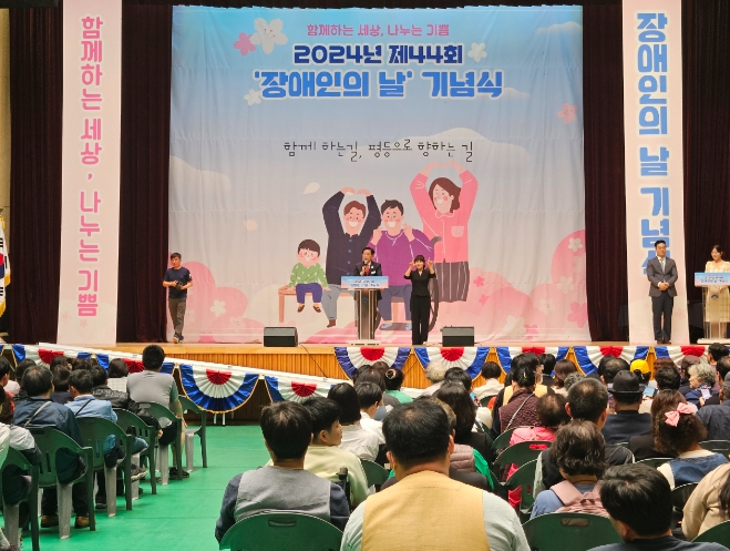 양평군과 양평군사회복지협의회(회장 이용근)가 주최·주관한 이날 기념행사는 ‘함께 하는 길, 평등으로 향하는 길’을 슬로건으로 내걸고 관내 장애인과 가족, 장애인복지 관련 종사자 등 군민 500여 명이 참석한 가운데 진행됐다.