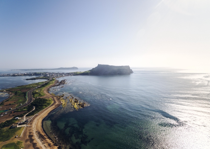 “성산읍 갯벌식생 복원사업”은 2025년까지 총 사업비 144억원(국비 101억, 도비 43억)을 투입하여 성산읍 광치기해안 일대를 중심으로 잘피 및 순비기 등 제주 토종 염생식물 군락지를 조성하는 사업으로, 블루카본 확대, 인근 유명 관광자원과 연계한 해양생태관광 활성화를 목표로 추진하는 사업이다.