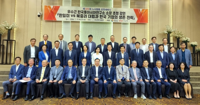 한편, 이날 '한미일 북중러 패권대립과 한국 기업의 생존 전략'이라는 주제로 우수근 한국동아시아연구소 소장이 강연을 진행했다.