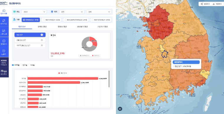 | ▲ SGIS “청년통계지도” 서비스 화면 |