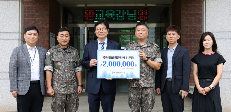인천시교육청은 명절을 앞두고 국토방위에 최선을 다하고 있는 군 장병들과 소방 구급활동 등 대민 봉사 업무관계자들에게 따뜻한 사랑의 마음을 나누고 감사의 마음을 전하고자 매년 위문 활동을 지속하고 있다.