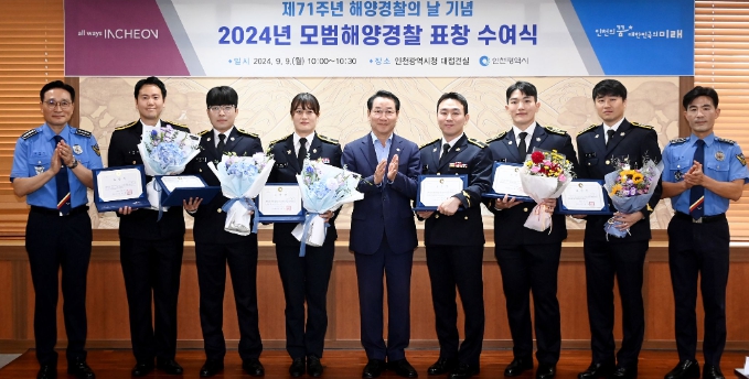 [뉴스서울] 인천광역시는 9월 9일 시청 접견실에서 제71주년 해양경찰의 날(9월 10일)을 기념하여 인천해양경찰서와 서해5도특별경비단 소속 해양경찰관 6명에게 표창을 수여했다고 밝혔다.