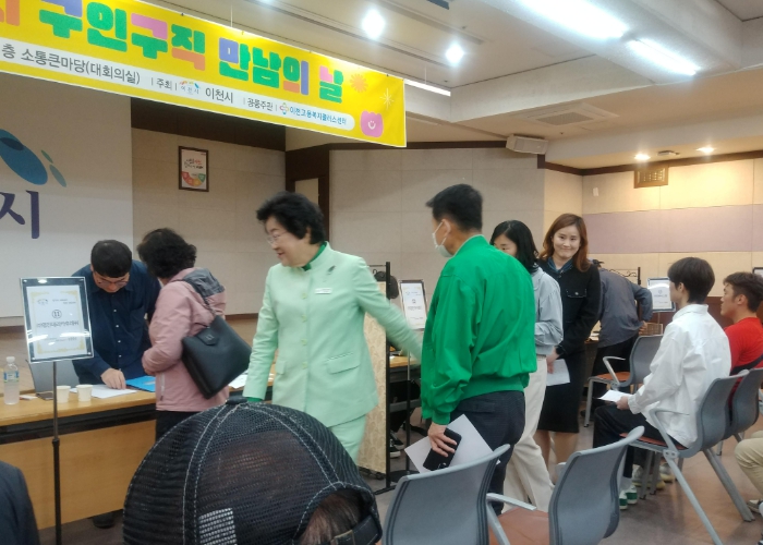 이천시장은 ‘4월 구인구직 만남의 날’채용행사에 방문하여 “인력난 및 취업난을 겪고 있는 구인구직자들을 격려하고 일자리 창출 및 지역경제 활성화를 위해 최선을 다하겠다”고 말했다.