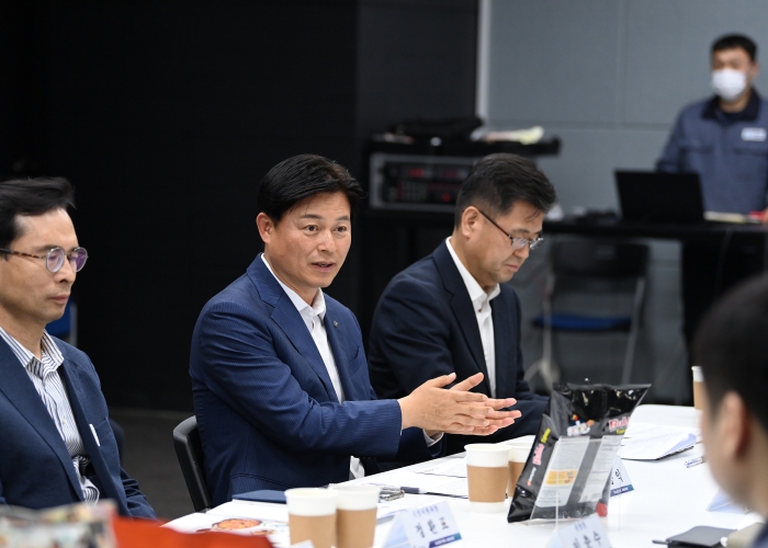 ▲ 조용익 부천시장이 기업 임원진과 간담회에서 기업의 애로사항을 경청하고 있다. |