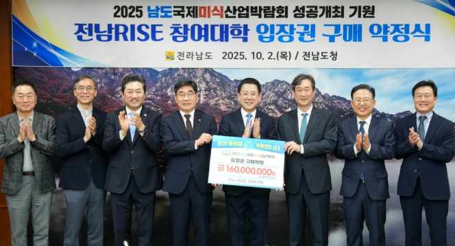 [뉴스서울] 전라남도는 2일 도청 접견실에서 전남RISE 참여대학 총장단과 함께 ‘2025 남도국제미식산업박람회 입장권 구매 약정식’을 개최했다.