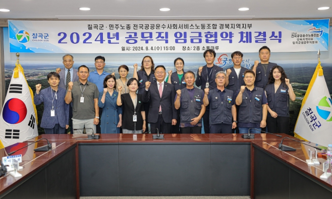 [뉴스서울] 칠곡군은 지난 4일 민주노총 전국공공운수사회서비스노동조합과 2024년 임금 협약을 체결했다고 5일 밝혔다.
