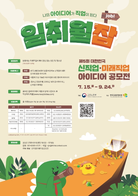 [뉴스서울] 고용노동부 한국고용정보원은 7월 15일부터 9월 24일까지 '제5회 대한민국 신직업·미래직업 아이디어 공모전'을 개최한다고 밝혔다.